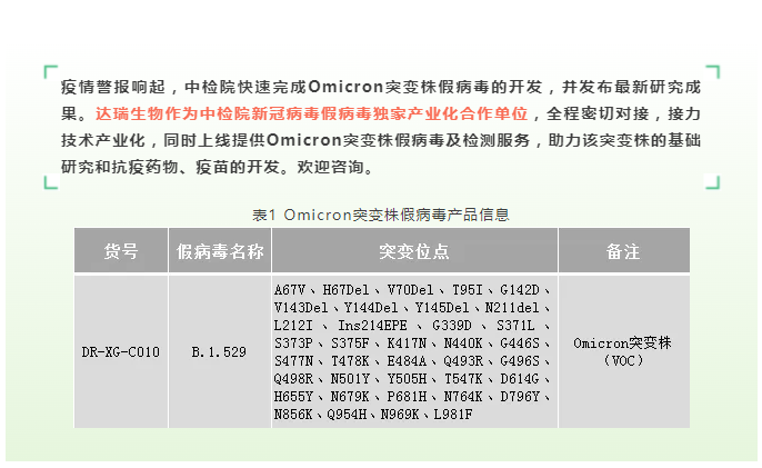中检院发布最新Omicron血清学研究数据,达瑞生物独家合作推出假病毒与检测服务