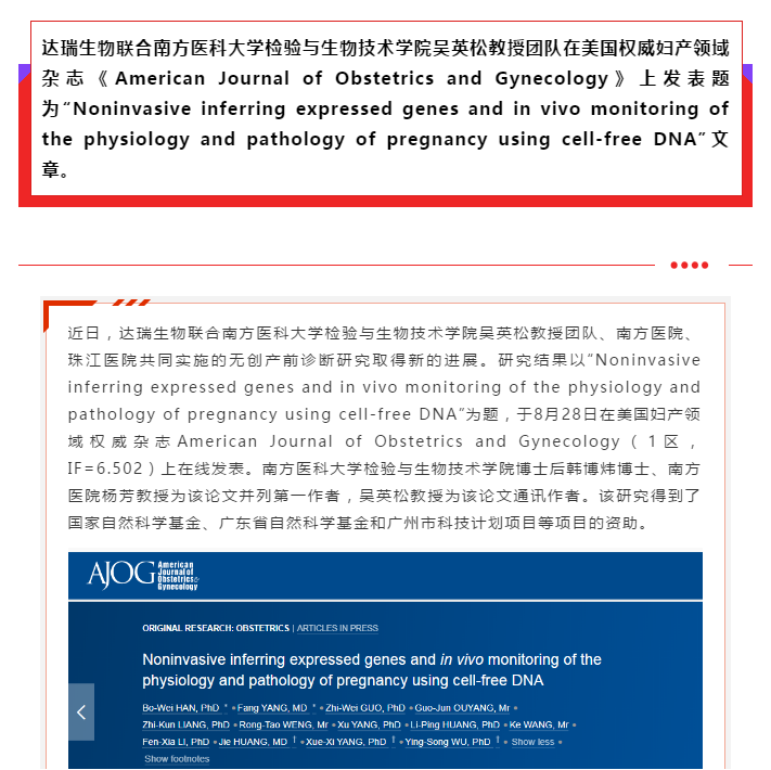 喜讯:达瑞生物无创产前诊断研究取得新进展!