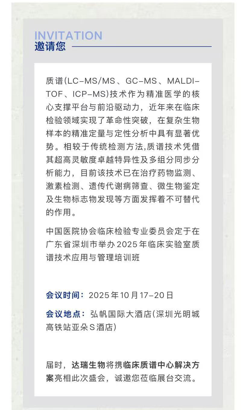 会议通知丨2025年临床实验室质谱技术应用与管理培训班